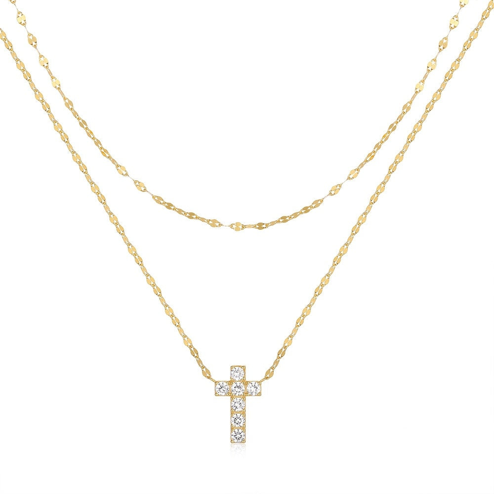 Celebrate faith and elegance with the Luciano Necklace, a refined expression of modern spirituality and timeless design. Crafted from Sterling Silver and finished with premium electroplating, this double-layer necklace features a delicate chain adorned with a radiant cross pendant set with shimmering stones. Its minimalist geometry and versatile length make it a sophisticated accessory for any occasion, blending classic symbolism with contemporary style.