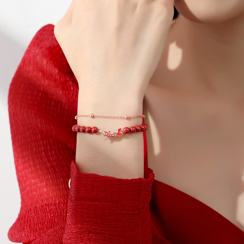 Inspired by traditional Chinese motifs, this stunning piece features a graceful koi fish—the emblem of good fortune and strength—set in radiant sterling silver and accented with sparkling cubic zirconia. The vivid red beaded design adds a touch of cultural charm and warmth, creating a bracelet that beautifully blends tradition with contemporary elegance. Perfect for women who appreciate jewelry with meaning and vibrant personality.