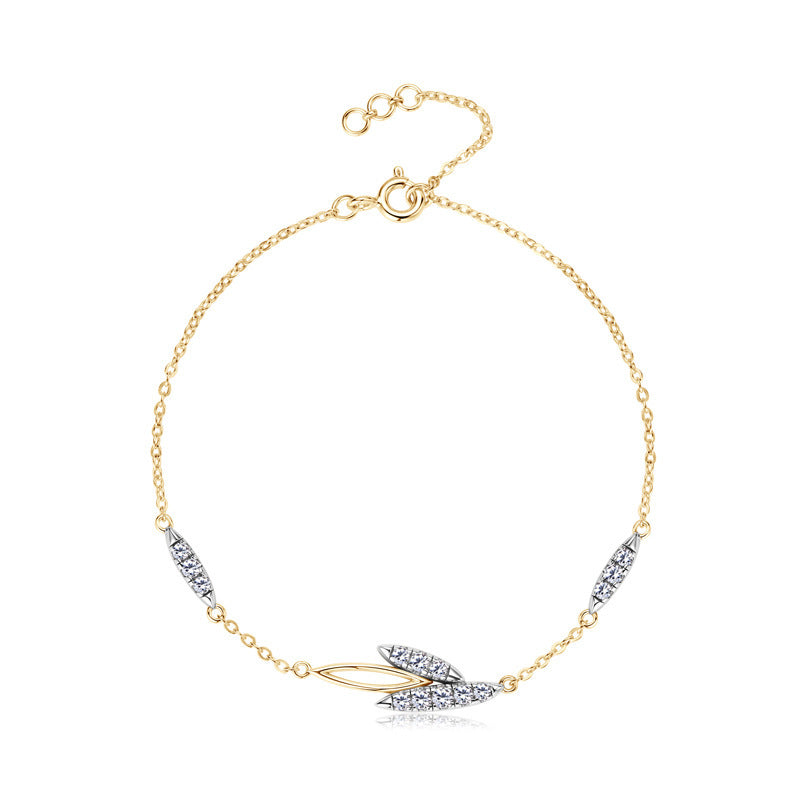 Discover timeless elegance with the Selene Bracelet. Meticulously crafted from sterling silver and luxuriously finished in gold plating, this piece captures the delicate beauty of leaves through a graceful geometric design. Accented with sparkling zircon stones, it embodies sophistication and natural charm, making it a perfect accessory for any occasion.
